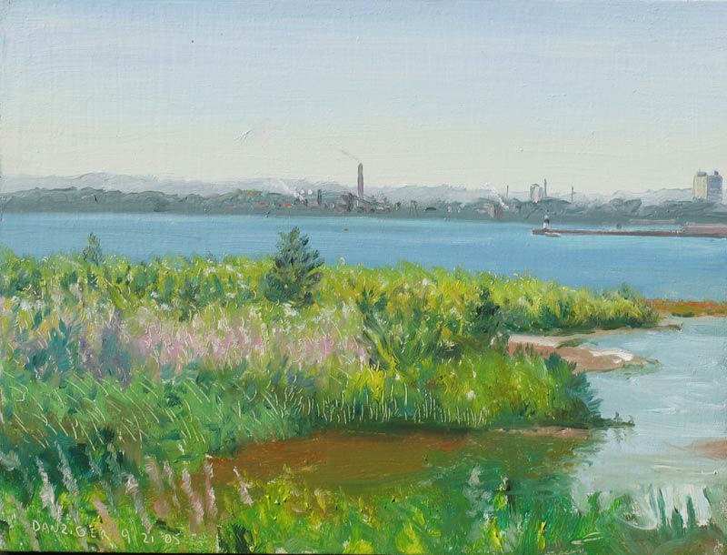 - "Erie from the Presque Isle nature preserve" 2005 oil on wood 6 x 8"