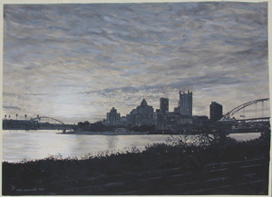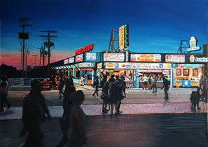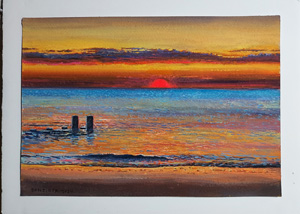 "Bay Sunset" 8 x 10 gouache $600.(Sold) |