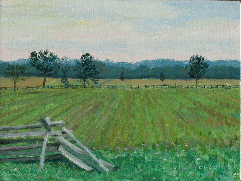 "Gettysburg Morning" 2005 oil on wood 5.5 x 7.25"