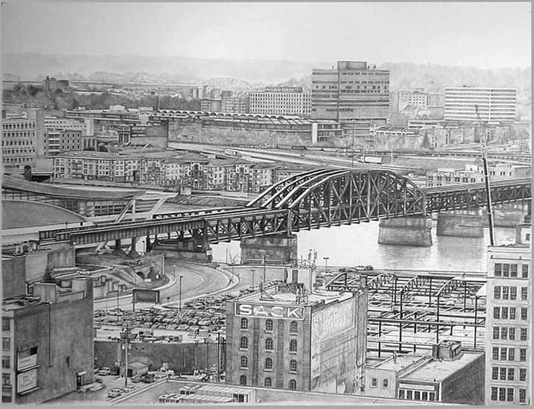 "A view of the Allegheny river from the Civic Arena. It is as simple as possible: pencil and paper." (Zoom In )
