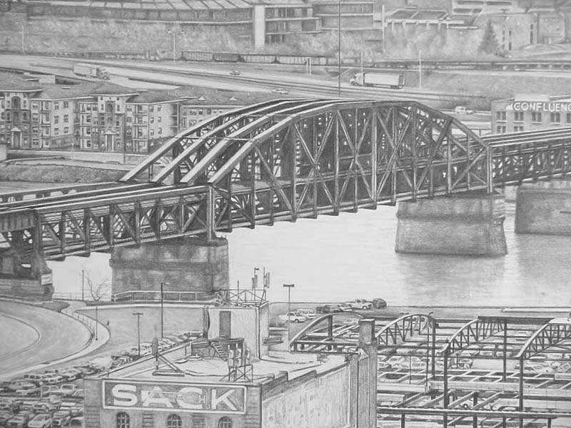 "A view of the Allegheny river from the Civic Arena. It is as simple as possible: pencil and paper." (