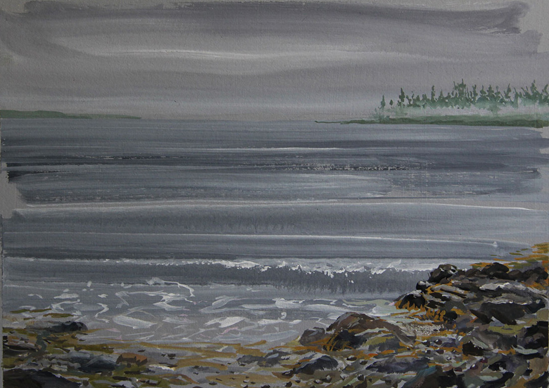 "Mystic Point 7 x 10 Gouache A quiet fog bound morning in Maine!