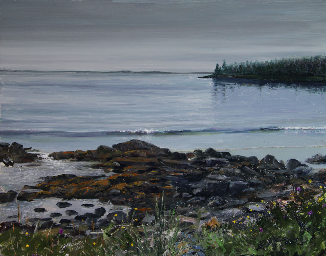 "Quiet Wave 11 x 14 inches 2021 oil $850. The soft sound of waves easing themselves onto the sand...