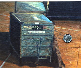 This painting was the subject of considerable WWW activity. As it took shape on the canvas, I photographed and posted the evolving image onto this location. An international e-mail audience commented and interacted with me, and eventually, that interaction had a significant affect on the final form of the painting.