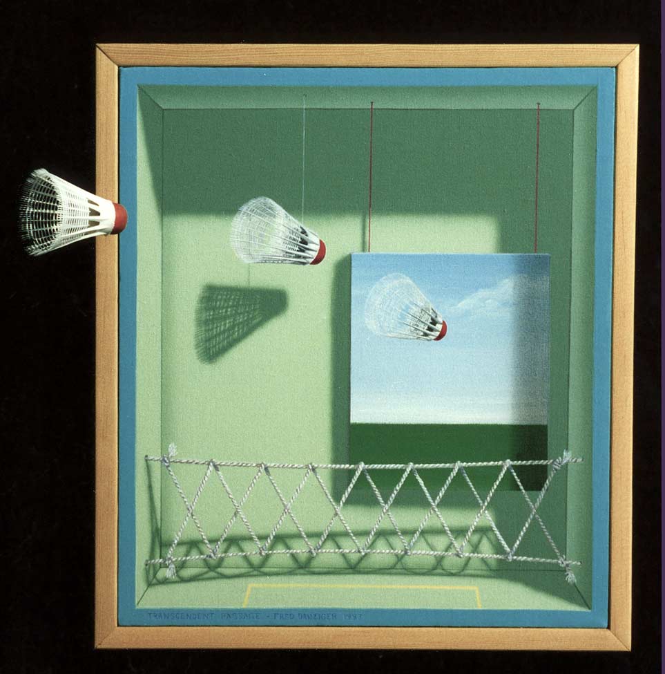This piece was inspired by "Godel, Escher and Bach" - the impenetrable book by Douglas Hofstadter. I "read" it, but I don't know what I read! A badminton birdie goes through several layers of reality on its way across a net.