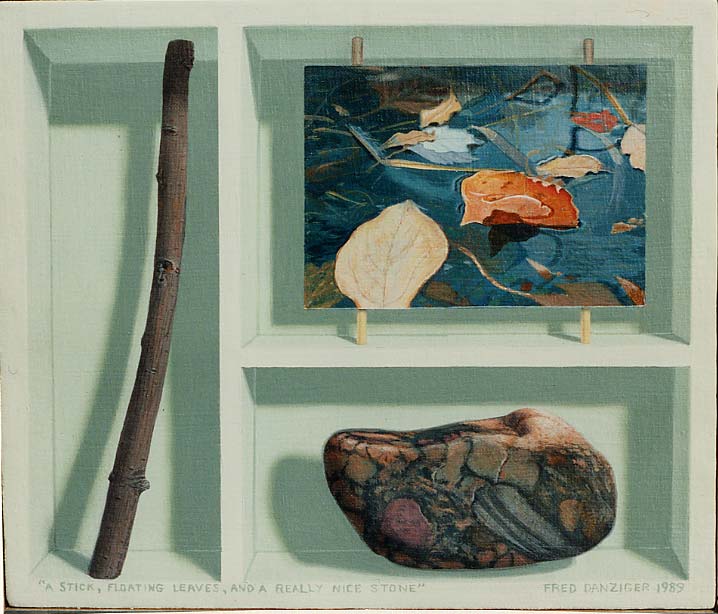 "A Stick; Floating Leaves; and a Really Nice Stone" 1989 --acrylic-- c. 9" x 12"